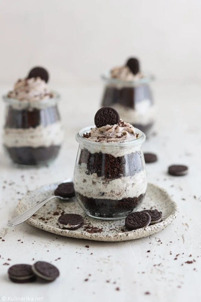 Oreo sladica v kozarcu je za vse ljubitelje teh slastnih kakavovih piškotov polnjenih s kremo.