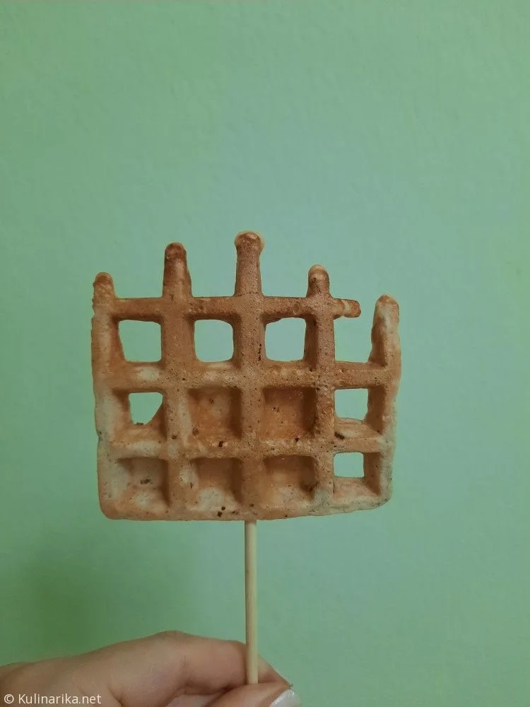 Vaflje spečemo v aparatu za vaflje in s strani dodamo palčko za nabodala.