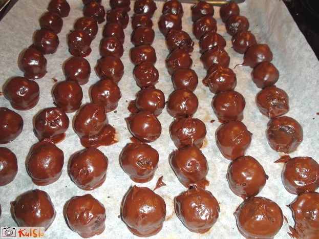 Če kroglice odstojijo nekaj ur (da se naredi skorja), je pomakanje v čokolado bolj enostavno.