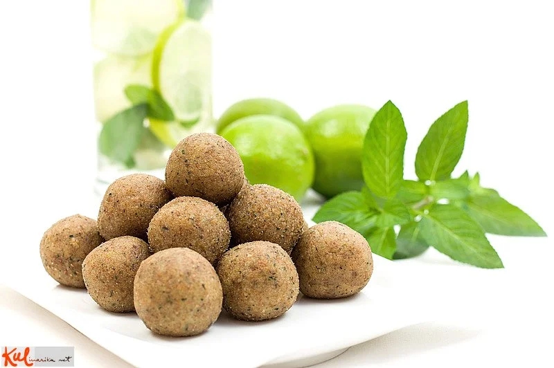 V blenderju zmeljemo mandlje, datlje, iztisnjen sok treh limet (pri alkoholni verziji dve limeti in 0,03 belega ruma), naribano lupinico treh limet, cca. 30 listov mete in 2 žlici agavinega sirupa. Ko so vse sestavine dobro zmlete in nastane lepljiva masa, jo postavimo za 30 minut v hladilnik, da se ohladi. Iz ohlajene mase oblikujemo kroglice.