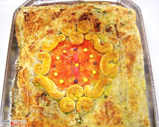 Iz vseh sestavin zgnetemo testo, 2/3 ga zvaljamo in damo v pekač. Nato zmešamo skuto z jajcem in sladkorjem in damo na testo, potem zmešamo orehe s sladkorjem, rumom in limonino lupinico ter posujemo po skuti. Naredimo preliv iz smetane in jajc ter polijemo po orehih, nato zmešamo mak, sladkor, rum, limonino lupinico in posujemo po orehih. Zdaj spet polijemo s pripravljenim prelivom.