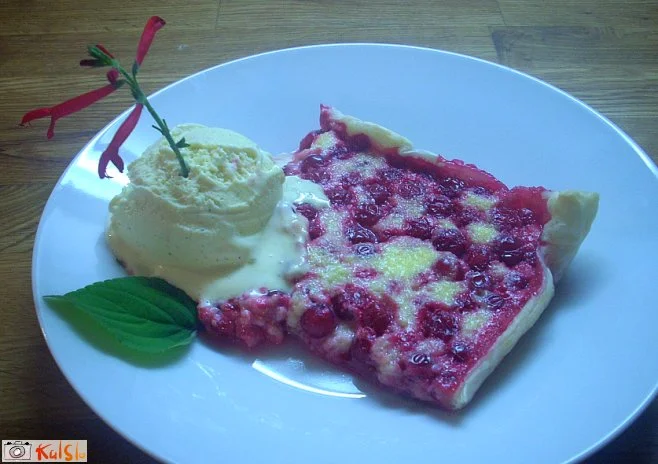 Danes sem naredila to krostato, točno po receptu. Odlična sladica, čeprav sem posula z odmrznjenim (a domačim) ribezom. Še bo na našem jedilniku!