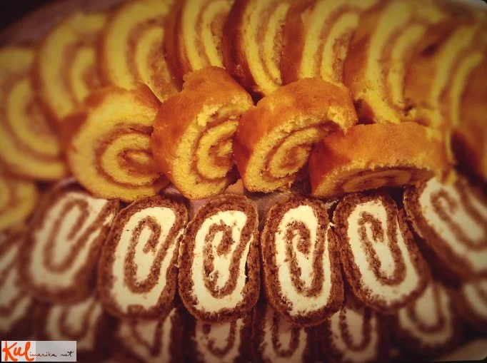 Jabolka naribamo, dodamo cimet in sladkor. Nato pekač namažemo z oljem in razporedimo jabolka po pekaču ter damo peči na 200 stopinj. Spečemo do polovice. Nato ločimo beljake in rumenjake. K stepenim beljakom dodamo sladkor. Nato pa še rumenjake, moko, med katero zmešamo pecilni prašek ter vanilijev sladkor. Rahlo vse skupaj premešamo in enakomerno razporedimo po jabolkih. Nato pečemo dokler biskvit ni pečen. Pripravimo si mokro krpo, na katero iz pekača stresemo biskvit. Nato rolado pazljivo zvijemo na tanko z jabolki vred.
