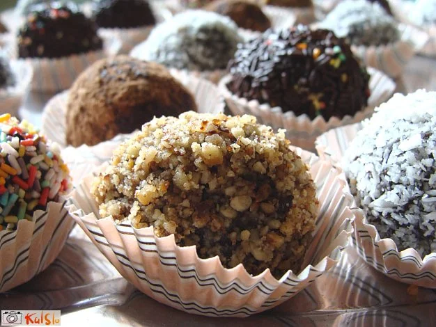 Z rokami oblikujemo poljubno velike kroglice, jih povaljamo v mleti čokoladi, čokoladnih mrvicah, čokoladnih ostružkih ali v mletih orehih. Postavimo v hladilnik.
