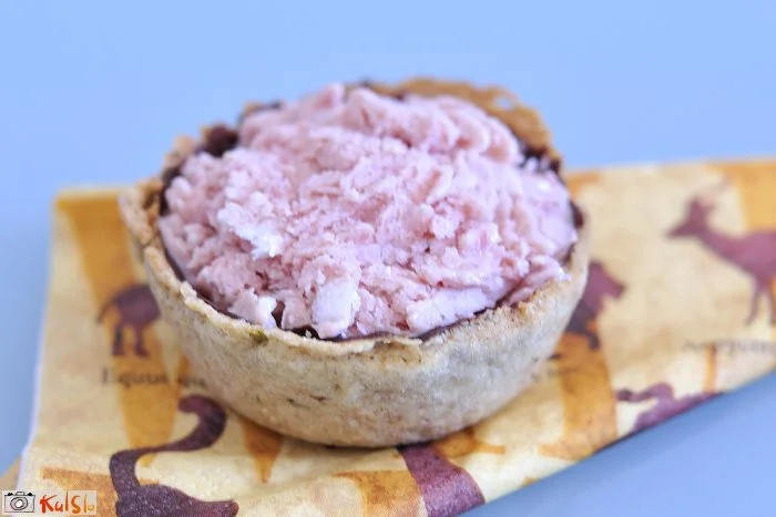 Najprej naredimo skodelice iz krhkega testa: umesimo ga iz naštetih sestavin. V hladilniku naj počiva kakšno uro, nato pa ga razvaljamo in izrežemo kroge. Z njimi obložimo predhodno namaščene vdolbine mafin pekača in damo v pečico na 180 stopinj. Pečene previdno vzamemo iz modelov.