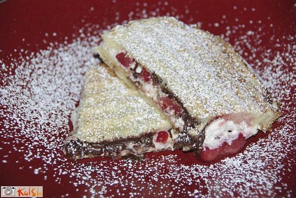 Skuto namažemo na kosa kruha. Na to položimo jagode, naribano čokolado in pokrijemo s kruhom, da dobimo sendviče. Popečemo v ne prevročem toasterju.