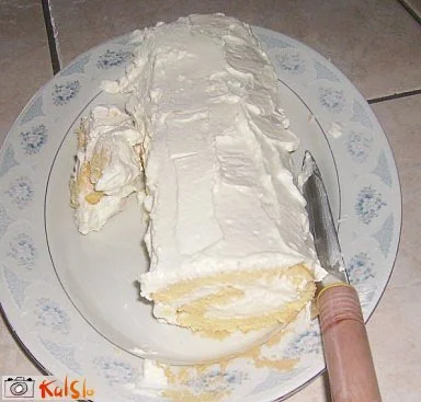 Ohlajen biskvit za rolado premažemo s kremo in zvijemo. Postavimo v hladilnik in postrežemo.