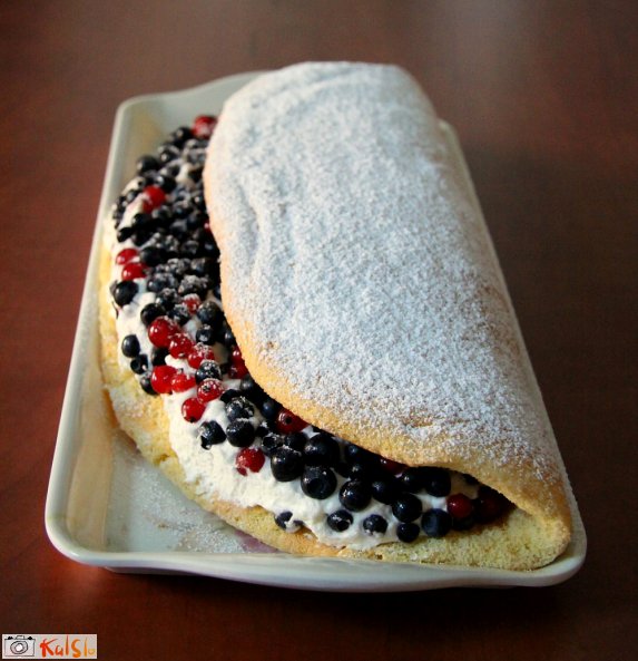 Rumenjake, sladkor in vanilijev sladkor penasto stepemo, dodamo trd sneg beljakov, limonino lupinico in moko. Iz biskvitne mase naredimo na namazanem pekaču 6 omlet in jih pečemo pri 180 stopinjah, da zlato porumenijo. Še tople upognemo. Ohlajene premažemo z marmelado, stepeno sladko smetano in potresemo z borovnicami ali drugim sadjem. Omleto prepognemo, rob okrasimo s smetano in jih bogato potresemo s sladkorjem v prahu.