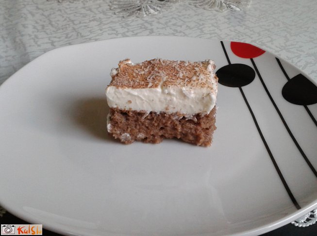 Sestavine za biskvit zmešamo in pečemo 20 minut pri 180-200 stopinjah. Skuhamo mleko, sladkor in rum. Ko je biskvit pečen, tekočino prelijemo po vročem biskvitu. Ko se ohladi, premažemo s smetano (2,5 dl) in posipamo s kokosovo moko ter kakavom.