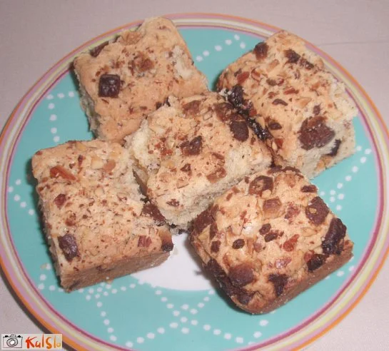 biskvitno pecivo s koščki bele in mlečne čokolade z drobljenimi mandlji