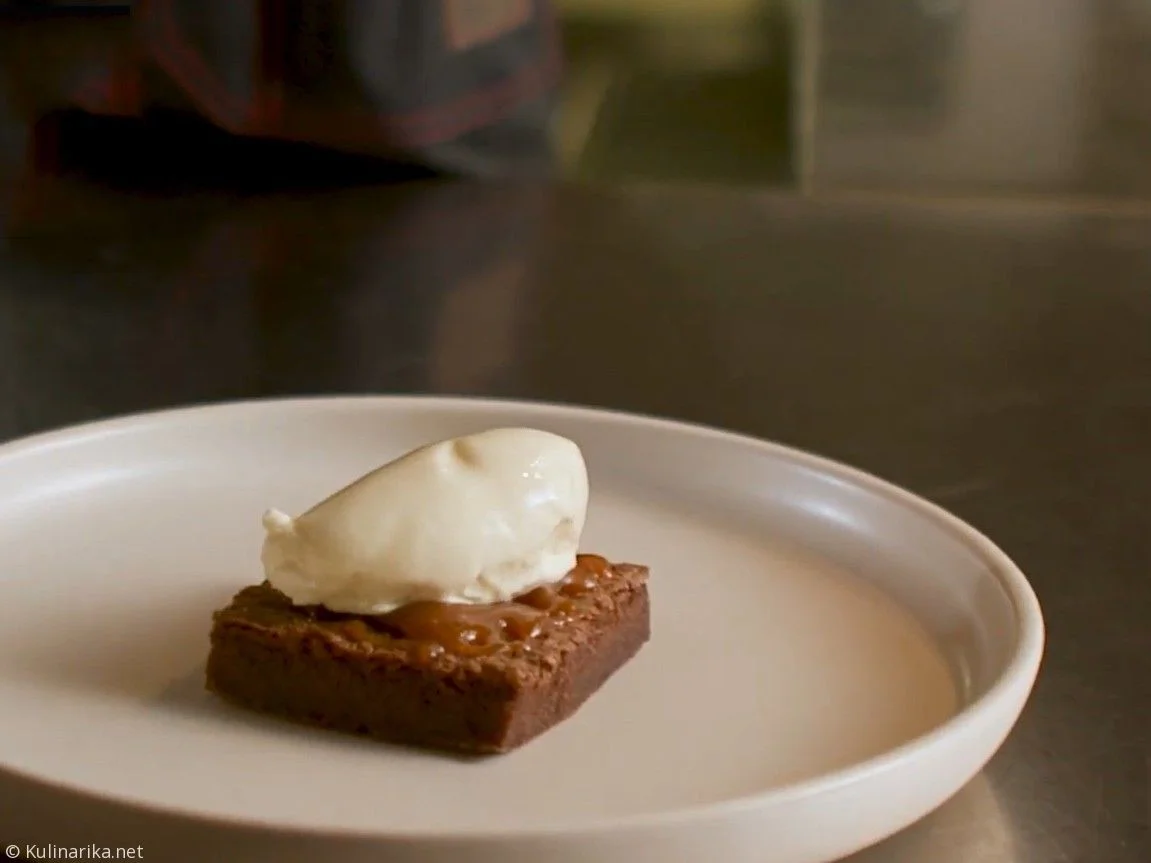 Browniji s temnim pivom, vanilijevim sladoledom in karamelo