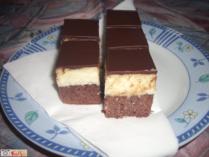 čokoladen biskvit s kokosovo kremo in čokoladnim oblivom