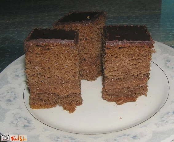 Čokolado stopimo na olju in z njo prelijemo biskvit. Pustimo, da se ohladi!