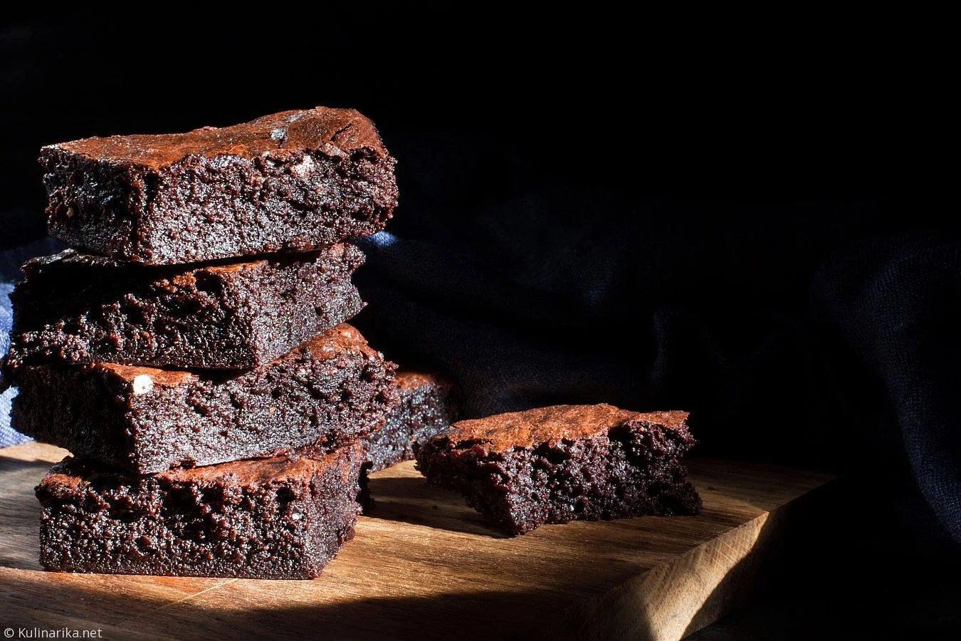 V večjem loncu segrejemo maslo, da se raztopi. V toplo maslo vmešamo temno čokolado in sladkor. Dodamo še preostale sestavine ter vse skupaj dobro premešamo z mešalnikom. Srednje velik pekač obložimo s peki papirjem ali namažemo z maslom in vanj vlijemo maso.