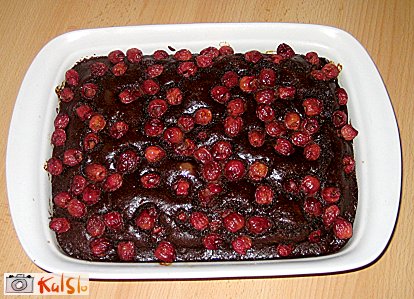 Kolač potisnemo v vročo pečico (na spodnjo rešetko) in pečemo približno 20 minut. Preostale češnje porazdelimo po kolaču in ga pečemo še 40 - 50 minut.