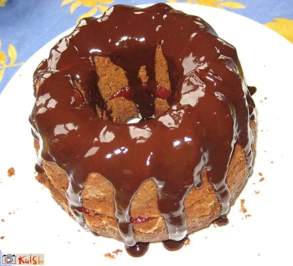 Naredila sem jo v modelu za šarkelj. Kolač sem pečen prerezala in namazala z domačo slivovo marmelado, ter ga po vrhu prelila s stopljeno čokolado, mlekom, sladkorjem v prahu in margarino (tako delamo pri nas prelive).
