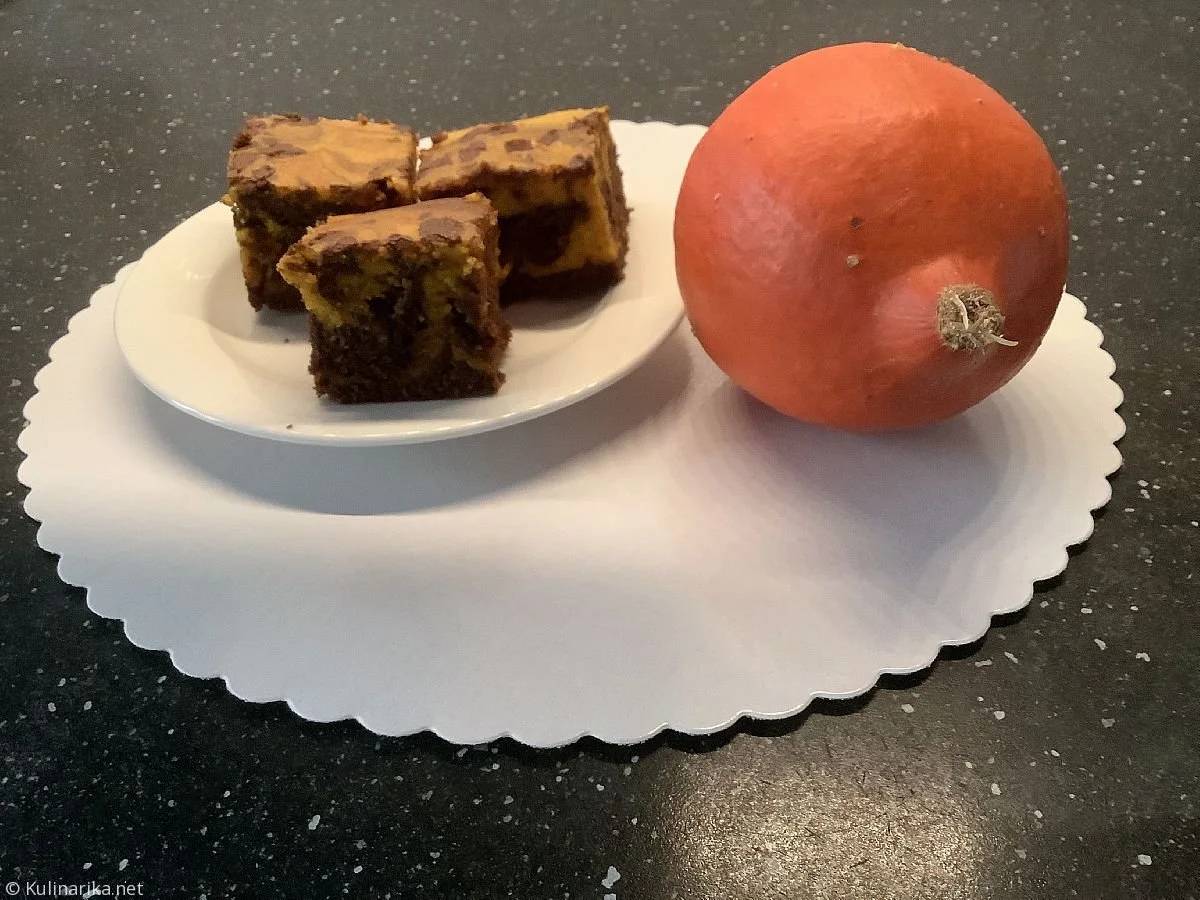 Enostavno in sočno pecivo bogatega okusa, kombinacija klasičnega čokoladnega testa za rjavčke in kreme iz bučnega pireja z začimbami