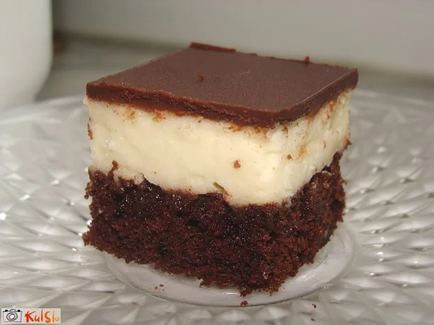 Ohlajeno testo navlažimo z mlekom in prekrijemo s kremo ter prelijemo s čokoladno glazuro.