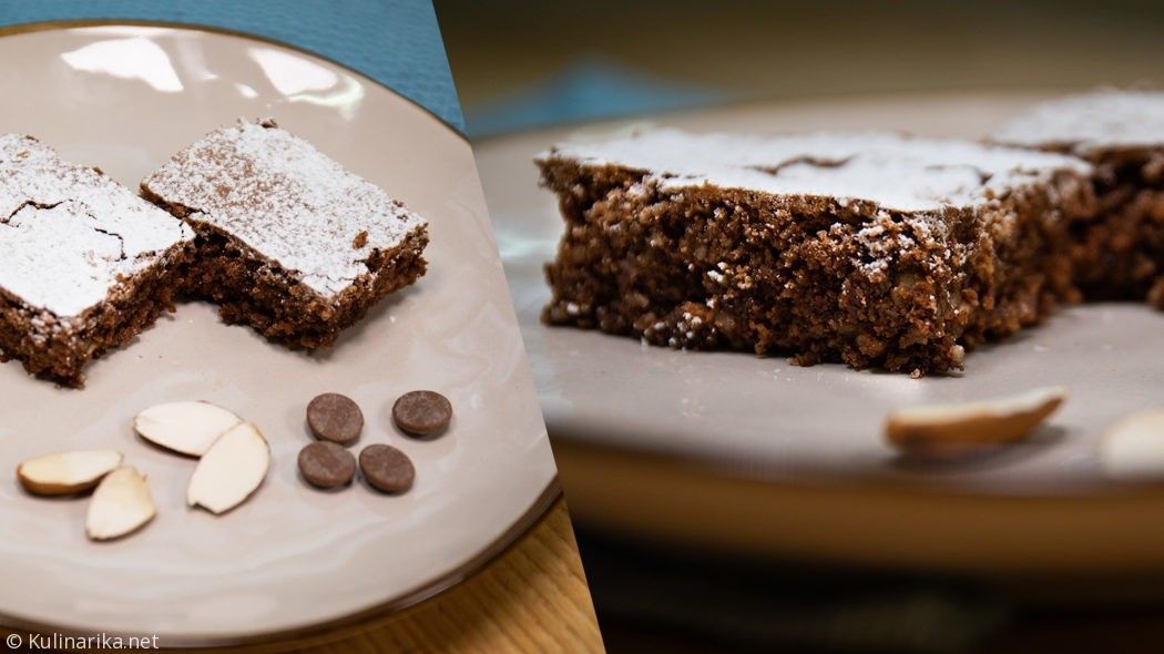 Stepena jajca in stopljeno mešanico čokolade in Zvijezda margarine zmešamo, dodamo mandlje in moko. Rahlo premešamo in položimo v pomaščen pekač.