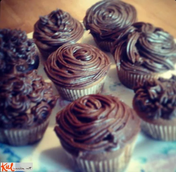 Iz tega recepta sem probala kremo, ampak sem zelo razočarana. Po okusu ni nič posebnega (kot pač bolj putrasta čokolada), poleg tega pa je zelo težko zgolj iz masla in čokolade naredilti kremo lepe teksture. Ko krema po dolgem miksanju in topljenju končno uspe, pa se obnaša tako kot maslo (na sobni temperaturi se stopi, v hladilniku pa popolnoma strdi). Ta krema je mogoče dobra za kakšno glazuro za torto, za cupcakes pa niti slučajno.