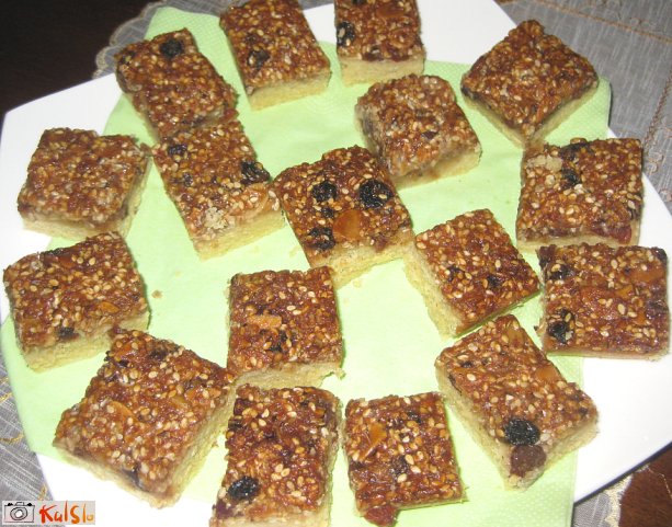 Pečeno ohladimo in narežemo na pravokotnike. Pa dober tek!