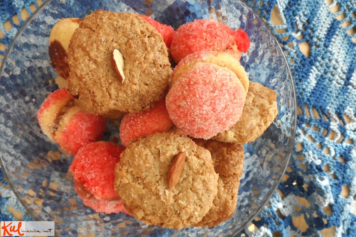 Beljake stepemo v sneg, dodajamo orehe in sladkor! Z majhno žlico delamo kolačke, vtisnemo jedrca mandljev ali orehov. Pečemo na 180 stopinj 15 minut!
