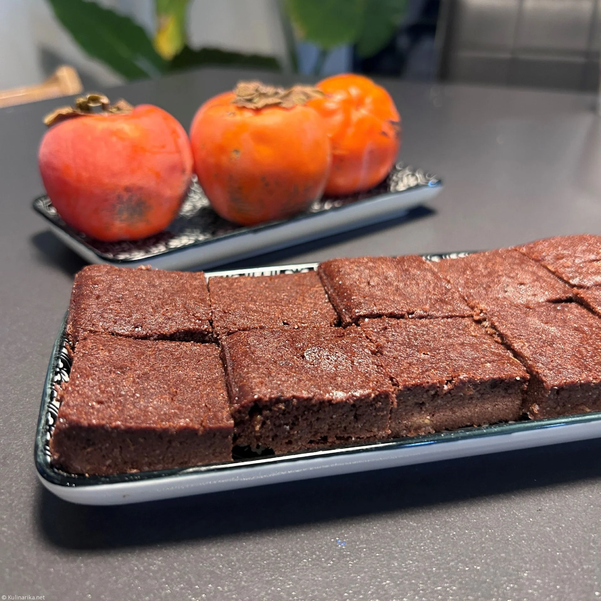 Sezona kakijev je tukaj in pri marsikom se drevesa dobesedno šibijo pod težo plodov. Iz njih lahko pripraviš marmelado, smoothie ali pa tole preprosto, sočno in okusno čokoladno pecivo, ki malenkost spominja na brownie.
