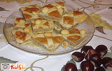 Kostanj skuhamo, ga zmeljemo, mu dodamo sladkor in rumenjake, dobro premešamo in na koncu dodamo še sneg štirih beljakov. Polovico testa položimo v pekač, dodamo kostanjevo kremo in po vrhu naredimo še mrežo iz druge polovice testa.