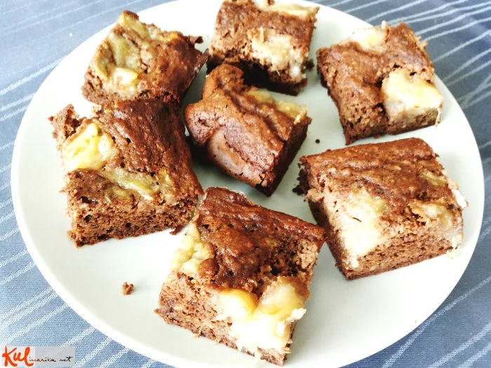 5. Vlijemo v pekač, obložen s papirjem za peko in potresemo s poljubnim sadjem.