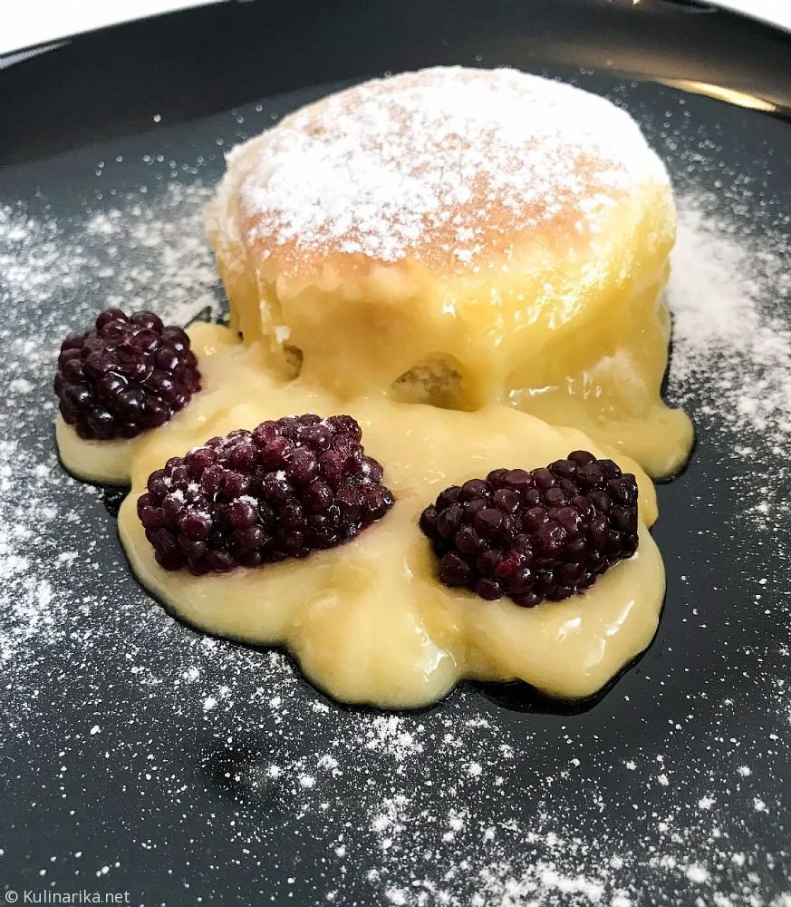 4. Ko so krofi vzhajani, jih položimo v namaščen pekač. Med krofi naj bo nekaj prostora. Previdno jih prelijemo z vanilijevo kremo, do približno polovice krofa. Pečemo jih v segreti pečici na 180 stopinj cca. 30 minut oz. dokler ne postanejo zapečeni.