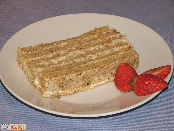 Recept sem malo prikrojila. V maso za testo sem dodala malo sladkorja (smo pač bolj sladkosnedi), v kremi pa sem izpustila žaletino, med, cimet ter vodo, pri čemer sem prihranila nekaj časa, saj je bila krema narejena takoj. Smetano sem malo stepla, dodala žlico sladkorja in mlete lešnike.