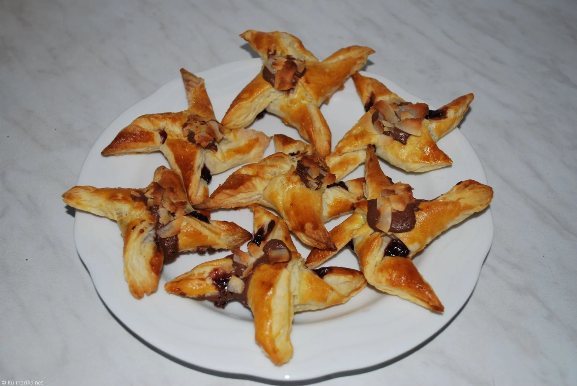 Zmrznjeno testo odtajamo, najbolje v hladilniku, ne na sobni temperaturi. Vsako kocko testa razvaljamo in narežemo na 6 kvadratov, ki jih zarežemo, kot prikazuje slika. Na sredino damo žličko poljubne marmelade ali Nutello. Oblikujemo vetrnice, ki jih na sredini fino pritisnemo in pokrijemo s kandirano češnjo. Pečemo v pečici cca. 20 minut, dobro je, da v pečico damo tudi skodelico vode, da se testo lepo dvigne in razlista. Listnato testo pečemo najprej na višji temperaturi, ki jo na polovici peke zmanjšamo. Na koncu lahko prižgemo ventilator za 2 minuti, da se vetrnice lepo zapečejo.