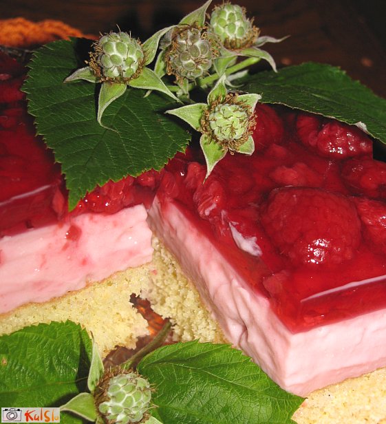 Včeraj sem tole pekla. Dobro je uspelo - biskvit je zelo rahel, jaz sem ga tudi navlažila (z malinovim sokom). Dokončala sem pa malo po svoje - zmrznjene maline se vmešala kar v kremo in izpustila preliv za torte, ker ga ne maramo. Da se povrhu ni naredila kožica, sem pekač prekrila s prozorno folijo, ko sem dala pecivo hladit. Zelo okusno!
