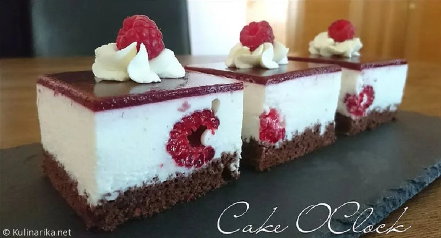 Trilogija okusov, kjer se čokoladni biskvit sreča z žametno vaniljevo kremo in eksplozijo malinove svežine! Vsak sloj te elegantne sladice skriva svoje presenečenje, skupaj pa ustvarjajo harmonijo, ki ji ne boste mogli reči ne.