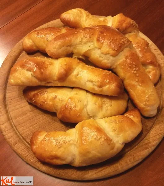 Slane rogljičke pred peko posujte z grobo soljo ali sezamom.