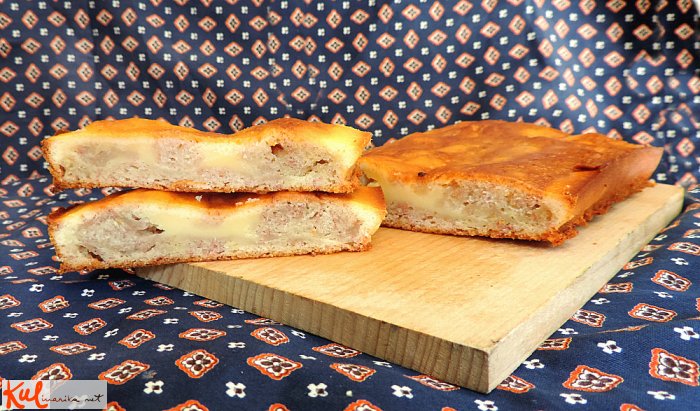 Zgladimo in čez nadev prelijemo še preostalo maso. Pečemo cca. 50-60 minut na 180 stopinj.
