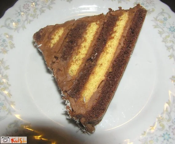 Sicer nisem naredila obliko piramide,sem pa uporabila recept za rezine.Spekla sem svetel in temen biskvit,vsakega narezala na tri trakove. Za ene rezine sem uporabila svetel-temen-svetel biskvit,za druge pa temen-svetel-temen biskvit.Namazala sem z nadevom tudi po vrhu in ob straneh ter posula s kokosom.Tako sem dobila dve različni rezini. Recept se lahko uporabi na različne načine,res pa je oblika piramide nekaj posebnega.Je pa pecivo izredno rahlo in okusno.