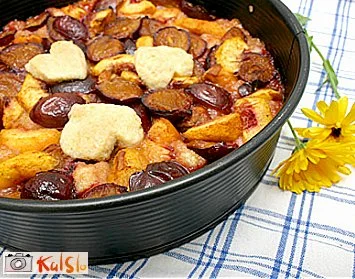 Maslo narežemo na manjše kocke, dodamo moko, jajce, sladkor in vanilijev sladkor ter zgnetemo v gladko maso, ki naj počiva v hladilniku približno pol ure. Slivam poberemo koščice in jih razpolovimo, breskve pa narežemo na krhlje. Sadje rahlo potresemo s sladkorjem (po okusu) in cimetom. Ohlajeno testo razvaljamo ali kar s prsti razporedimo po okroglem pekaču za pite s premerom 24 - 26 cm (jaz sem spekla kar v pekaču za torte). Testo na tanko premažemo s poljubno marmelado ter posujemo s sadjem. Pečemo eno uro pri 180 stopinjah.