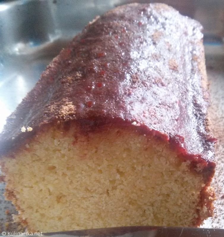 Počakamo, da se kolač ohladi. Stresemo ga iz modela, nato ga premažemo z malinovo marmelado in po vrhu posujemo s čokolado v prahu.