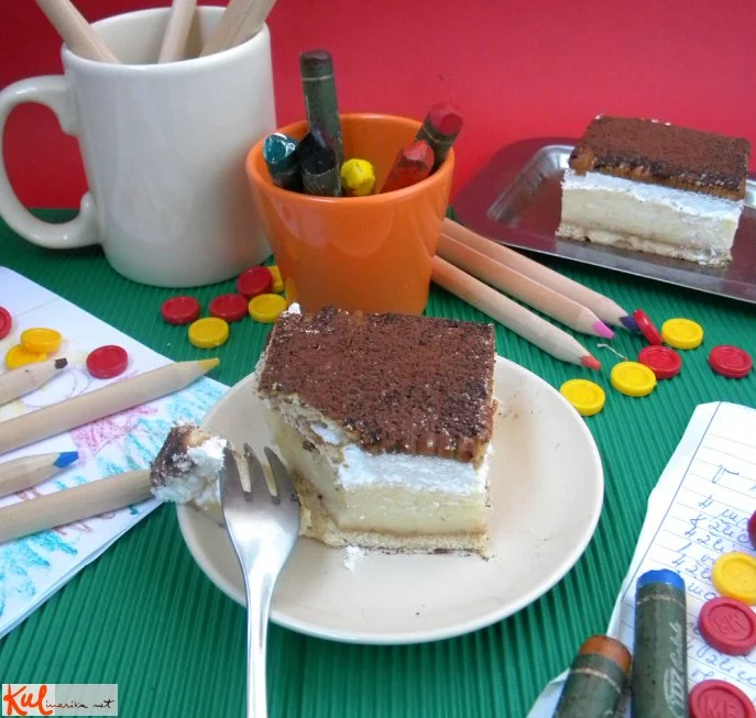 V pekač z visokim robom položimo namočene kekse (s kavo ali mlekom) ter prelijemo s toplo kremo in pustimo, da se ohladi. Stepeno sladko smetano premažemo čez ohlajeno kremo, prekrijemo s keksi (ne pozabimo na kavo) in prekrijemo s snegom, potresemo s kakavom.