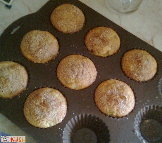 Nastalo maso nadevamo v modelčke, nato pa na vsak muffin na vrh damo pol žlice mešanice sladkorja in cimeta (posip).