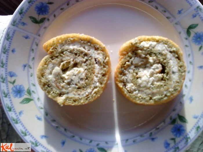 rolada z nadevom iz sira mascarpone in praženimi bučnimi semeni
