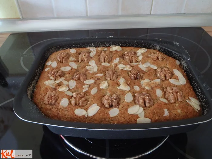 Mokrim sestavinam dodamo suhe in mešamo, dokler zmes ni enotna. Po želji dodamo orehe.