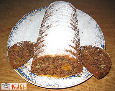Nadevamo v pomaščen in z moko potresen podolgovat pekač. Pečemo pri 175 stopinjah 45 minut, oziroma dokler ni pečeno (preverimo z zobotrebcem).