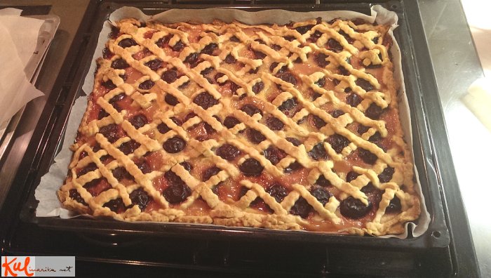 Če mreža po 40 minutah še vedno ne dobi barve (pita je sicer že pečena), svetujem, da za 5 minut vključite gornje gretje v pečici (da pečica močneje greje z zgornje strani).