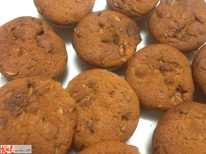 Pečemo 20 minut na 200 stopinj Celzija. (nasvet: pečico ob koncu pečenja odprimo čisto počasi, drugače se mafini opazno "skrčijo".)