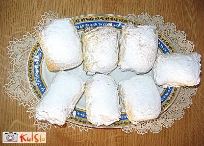Pečemo pri 180 stopinjah do zlato - rumene barve. Ohlajene štrukeljčke potresemo s sladkorjem v prahu.