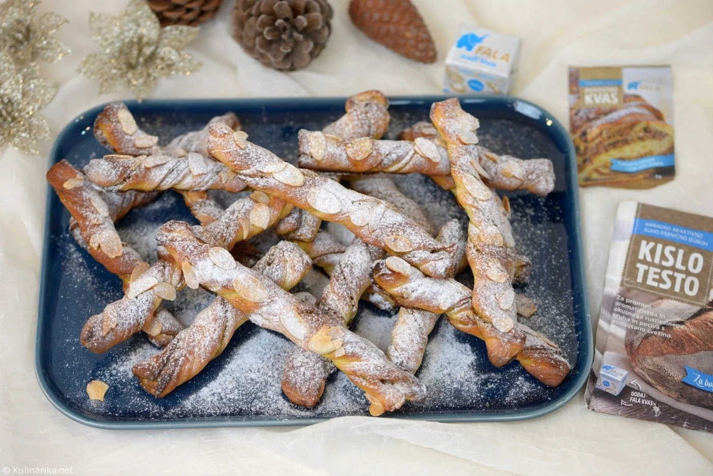 Vsak trak nato zavrtimo okrog svoje osi, da dobimo nakazano obliko svedra. Oblikovane svedrčke zložimo na pekač, jih pokrijemo in pustimo vzhajati.