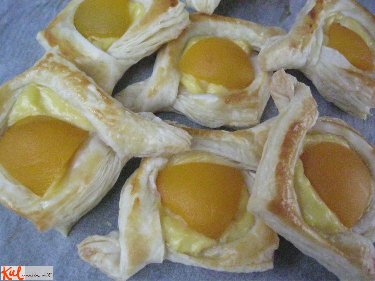 preprosta poslastica iz listnatega testa z vanilijevo kremo in marelicami