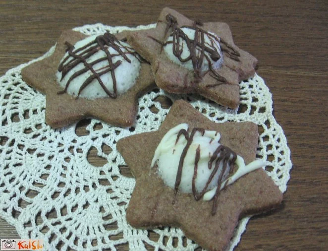 Zmešamo moko, sladkor, kakav, sol, razmehčano maslo in rumenjak in oblikujemo testo v kepo. Pustimo počivati na hladnem 1 uro. Testo razvaljamo in izrežemo z modelom piškote ter jih zložimo v pekač.